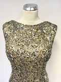 IN V GOOD PRELOVED CONDITION OTHER THAN A PATCH OF MISSING SEQUINS TO BOTTOM OF DRESS NEED REPLACING
