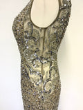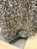 LIGHT BROWN MESH OVERLAY WITH SILVER BEADS & SEQUINS & GOLD INNER LINING