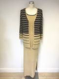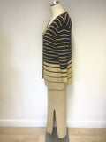 SCHMEINCK NAVY BLUE & CAMEL STRIPE KNIT CARDIGAN, TOP & LONG SKIRT ONE SIZE FIT UK 12/14