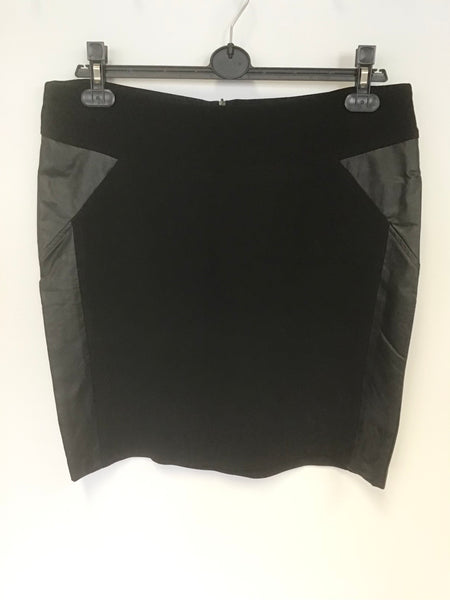 SECOND FEMALE BLACK FAUX LEATHER TRIM SHORT STRAIGHT SKIRT SIZE L