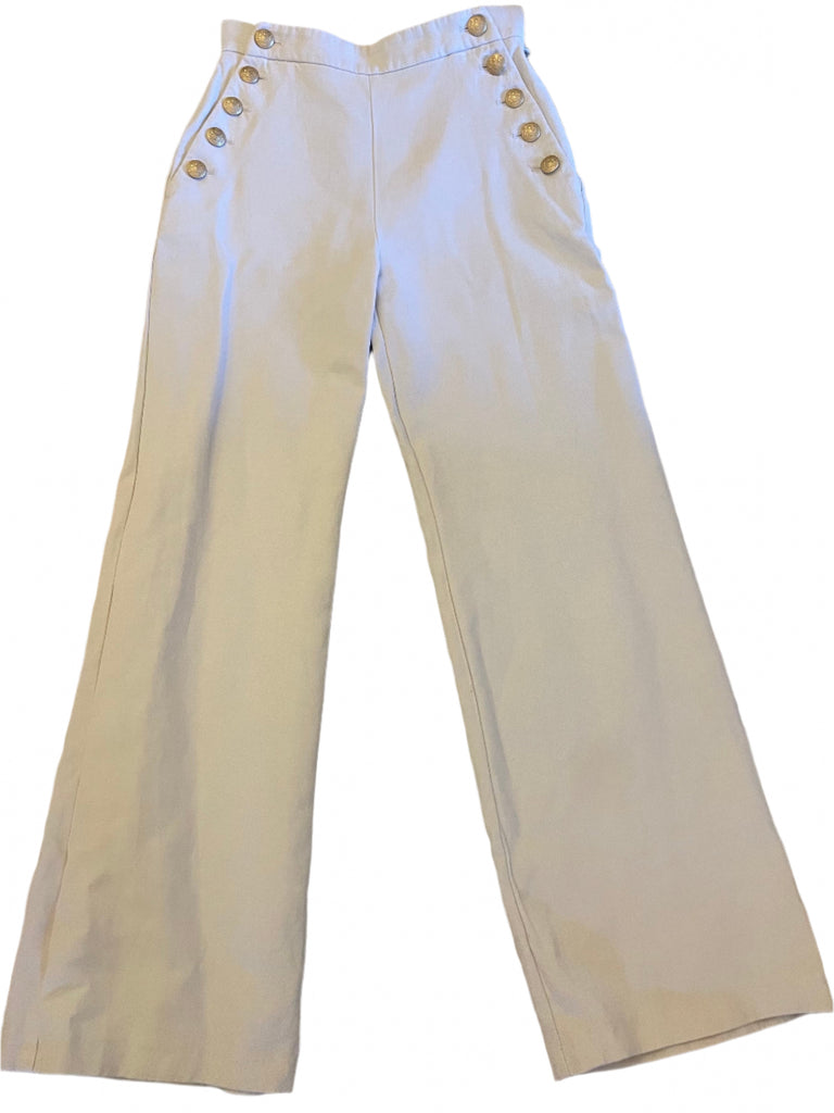 SEZANE IVORY BUTTON DETAILED WIDE LEG HIGH RISE TROUSERS SIZE 36 UK 8