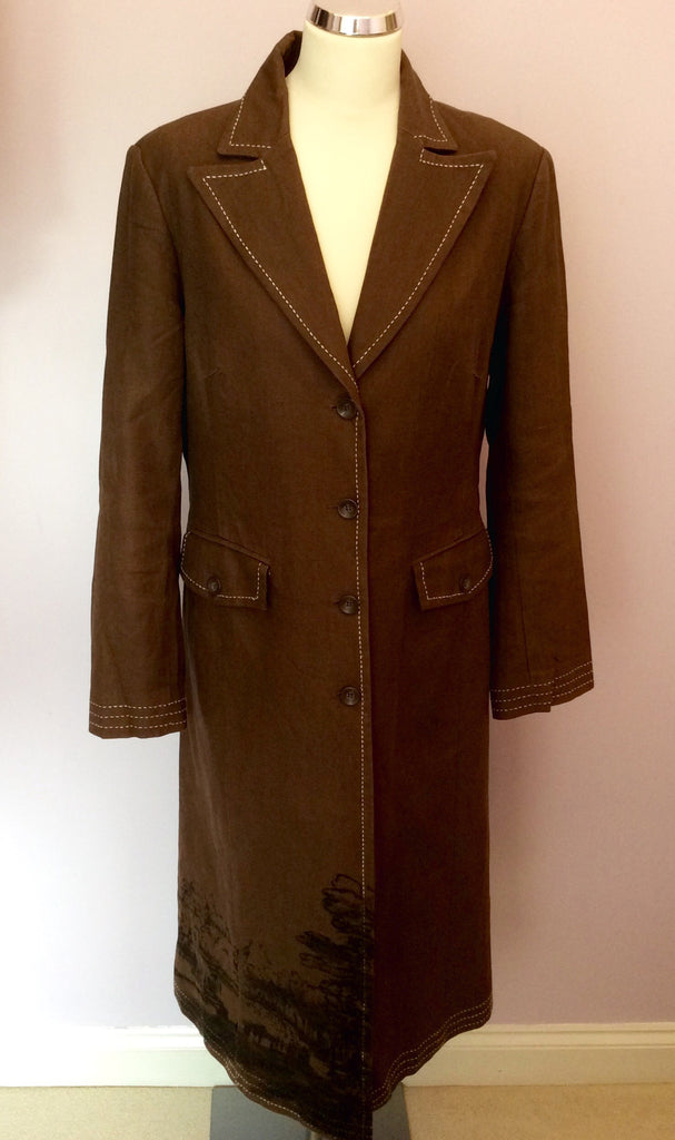 Simple Wish Brown & Black Print Trim Linen & Cotton Coat Size 38/10