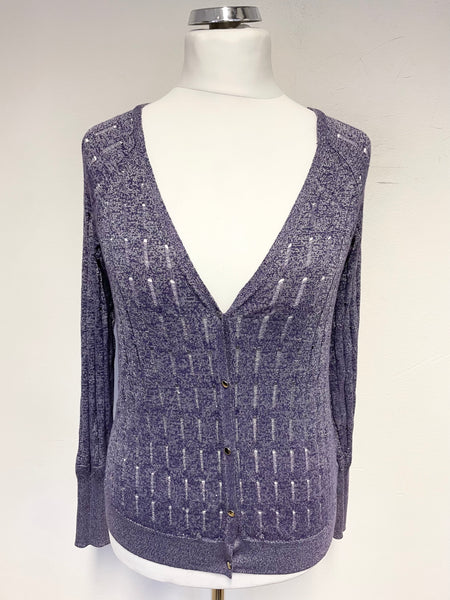 SIMPLY VERA BY VERA WANG PURPLE & SILVER WEAVE LONG SLEEVED CARDIGAN