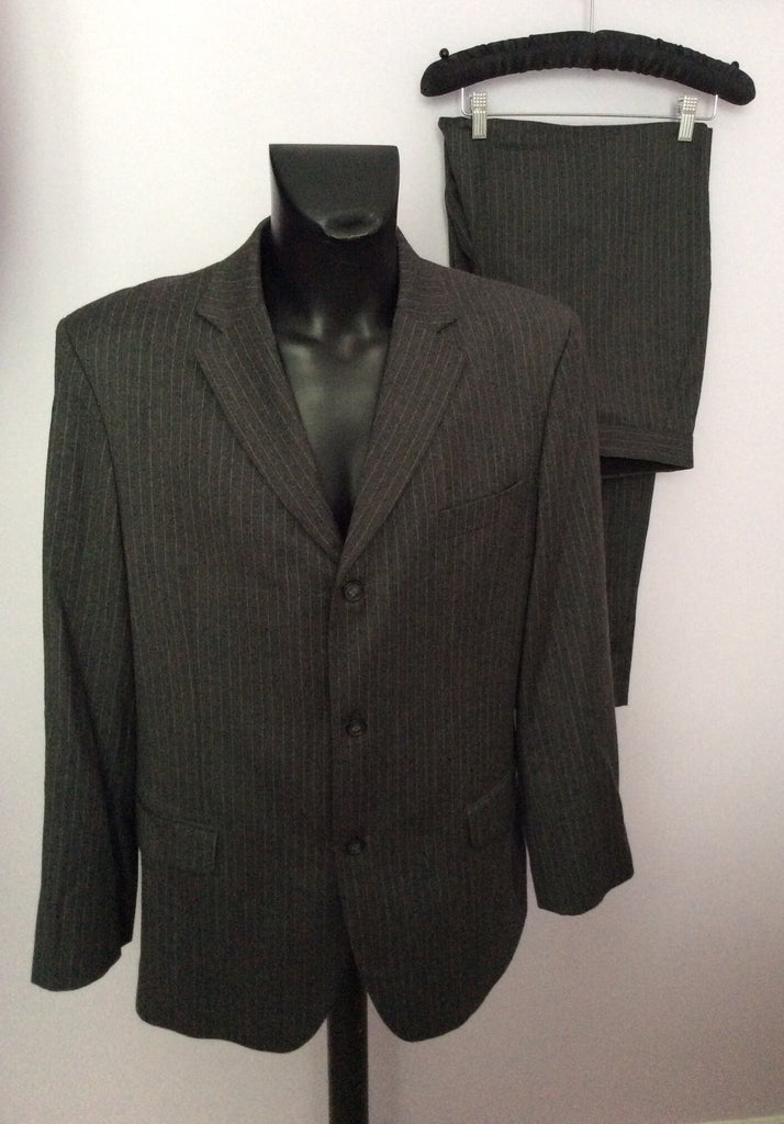 Smart FCUK Formal Grey Pinstripe 100% Wool Suit Size 44R/38W