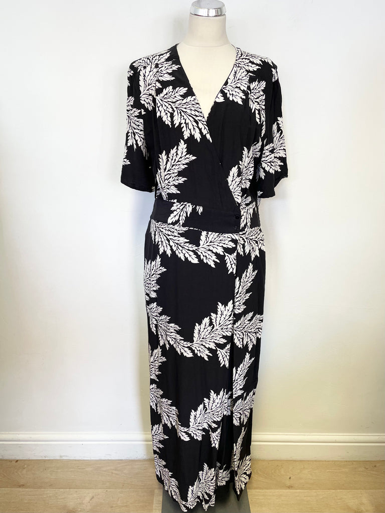 SOMERSET BY ALICE TEMPERLEY BLACK & WHITE LEAF PRINT JUMPSUIT