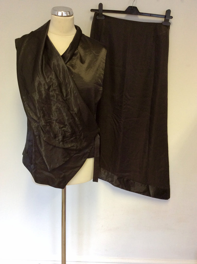 SONJA MAROHN DARK BROWN WRAP ACROSS SLEEVELESS TOP & LONG ASYMETIC SKIRT SIZE 12
