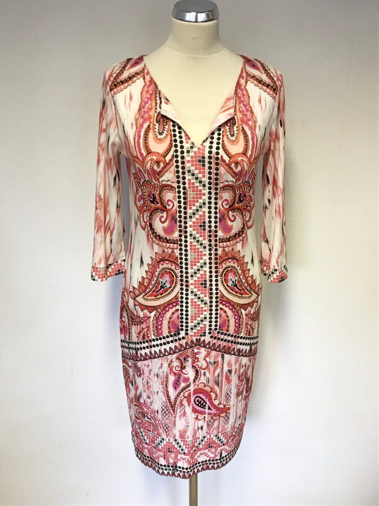 SPORTALM PINK & WHITE PRINT 3/4 SLEEVE STRETCH JERSEY DRESS SIZE 10