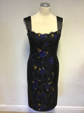 Star By Julien Macdonald Black With Lace & Floral Panel Pencil Dress Size 10