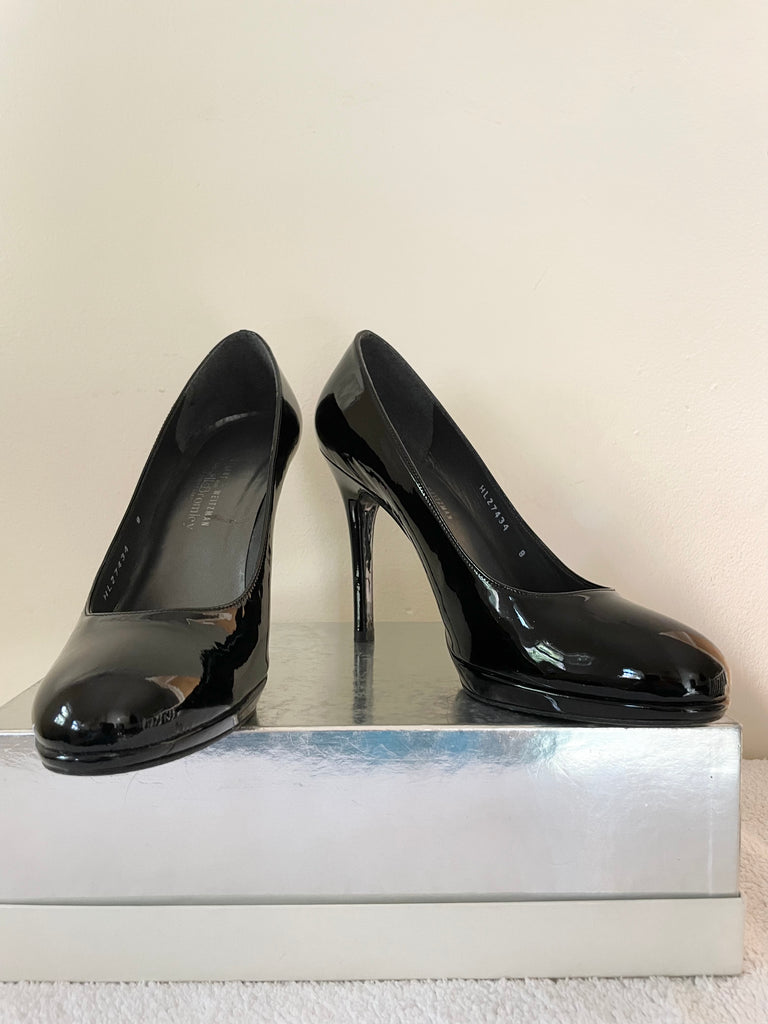 STUART WEITZMAN BLACK PATENT LEATHER HEELS SIZE US 8 UK 6/39