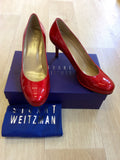 STUART WEITZMAN FOR RUSSELL & BROMLEY RED PATENT LEATHER HEELS SIZE 6/39