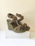 STUART WEITZMAN KHAKI TEXTILE WEAVE & LEATHER WEDGE HEEL SANDALS