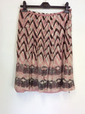 TED BAKER PINK,IVORY & BROWN PRINT SILK FLIPPY SKIRT SIZE 2 UK 10
