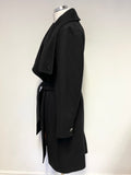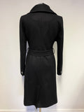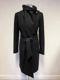 TED BAKER BLACK DANITA WRAP AROSS WOOL & CASHMERE BLEND BELTED KNEE LENGTH COAT SIZE 2 UK 10