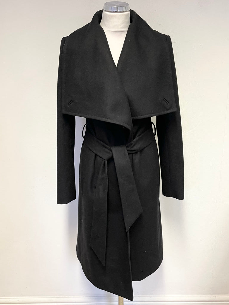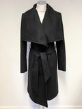 TED BAKER BLACK DANITA WRAP AROSS WOOL & CASHMERE BLEND BELTED KNEE LENGTH COAT