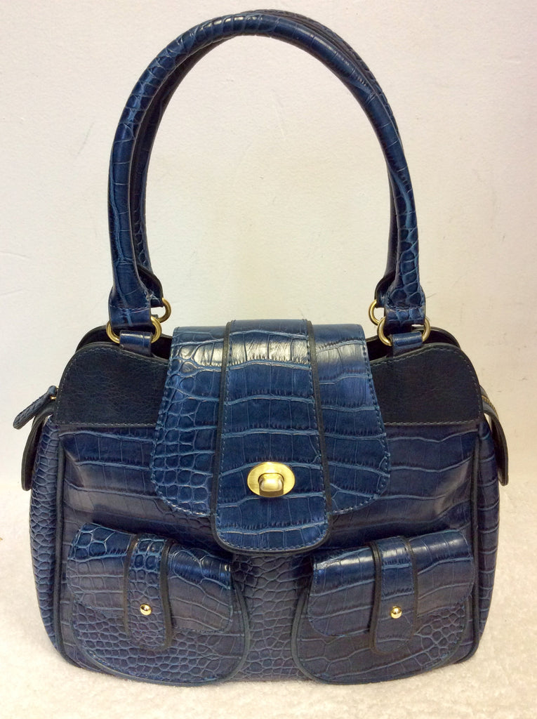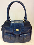 TED BAKER BLUE LEATHER CROC PRINT TOTE BAG