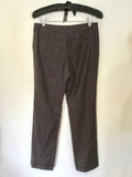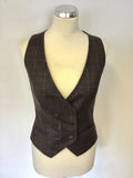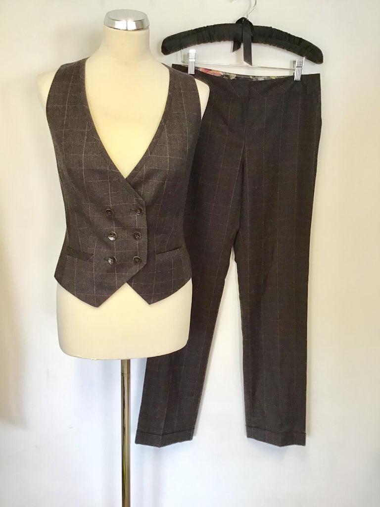 TED BAKER DARK BROWN CHECK WOOL BLEND WAISTCOAT & TROUSERS SIZE 1 UK 10