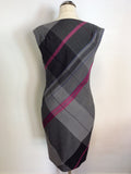 TED BAKER GREY,BLACK & PINK CHECK WOOL DRESS SIZE 3 UK 12