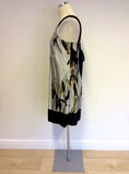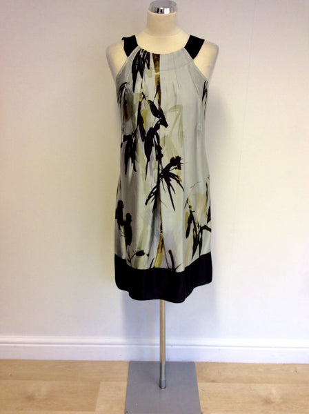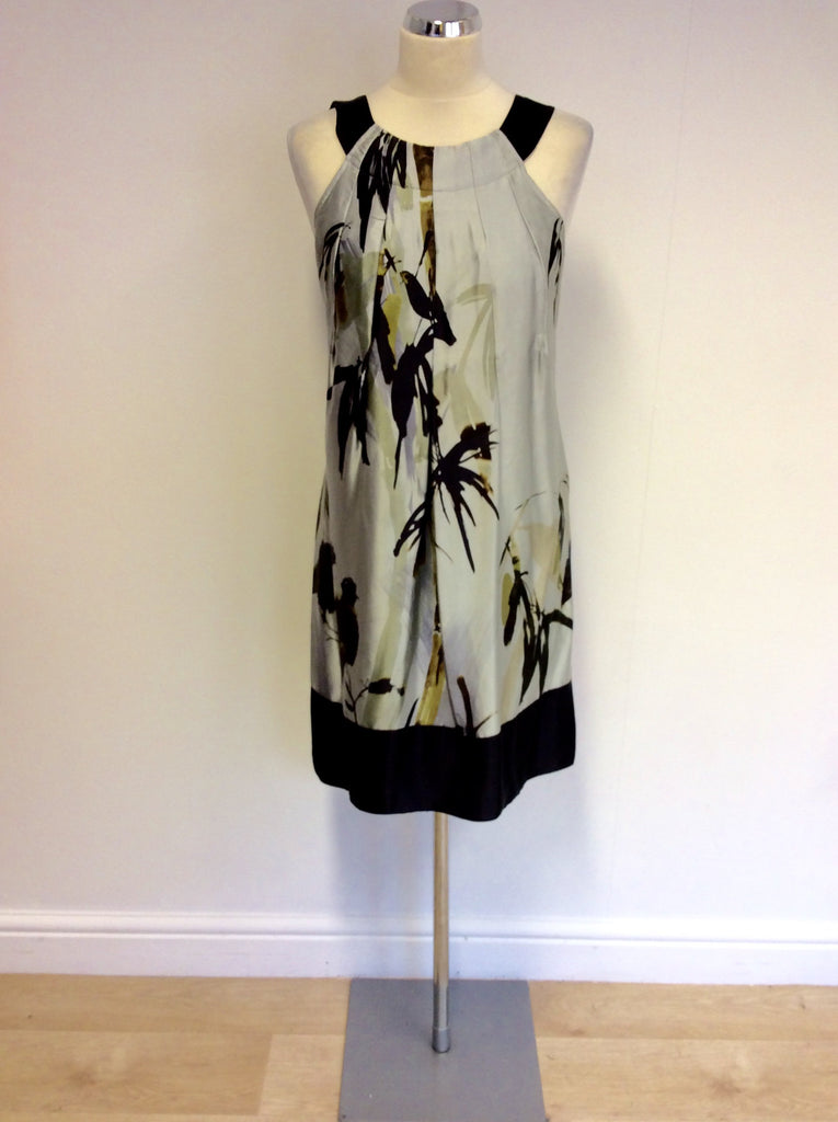 TED BAKER GREY & BLACK PRINT SILK DRESS SIZE 2 UK 8/10