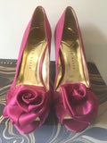 TED BAKER KEMINA ROSE FUSHIA PINK SATIN PEEPTOE HEELS SIZE 8/42 & FREE MATCHING CLUTCH BAG