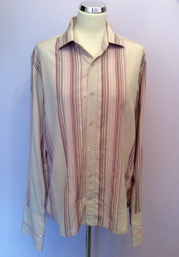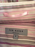 Ted Baker Pink Stripe Cotton Long Sleeve Double Cuff Shirt Size 4 UK 14/16
