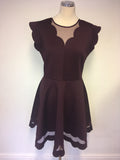 TED BAKER SHARLOT MAROON MESH INSERT SKATER DRESS SIZE 4 UK 14
