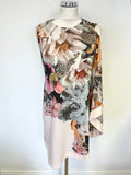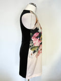 TED BAKER TAZZMYN BLUSH FLORAL PRINT DRAPE FRONT & BLACK REAR PENCIL DRESS SIZE 1 UK 8/10