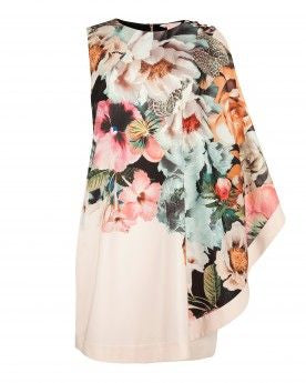 TED BAKER TAZZMYN BLUSH FLORAL PRINT DRAPE FRONT & BLACK REAR PENCIL DRESS