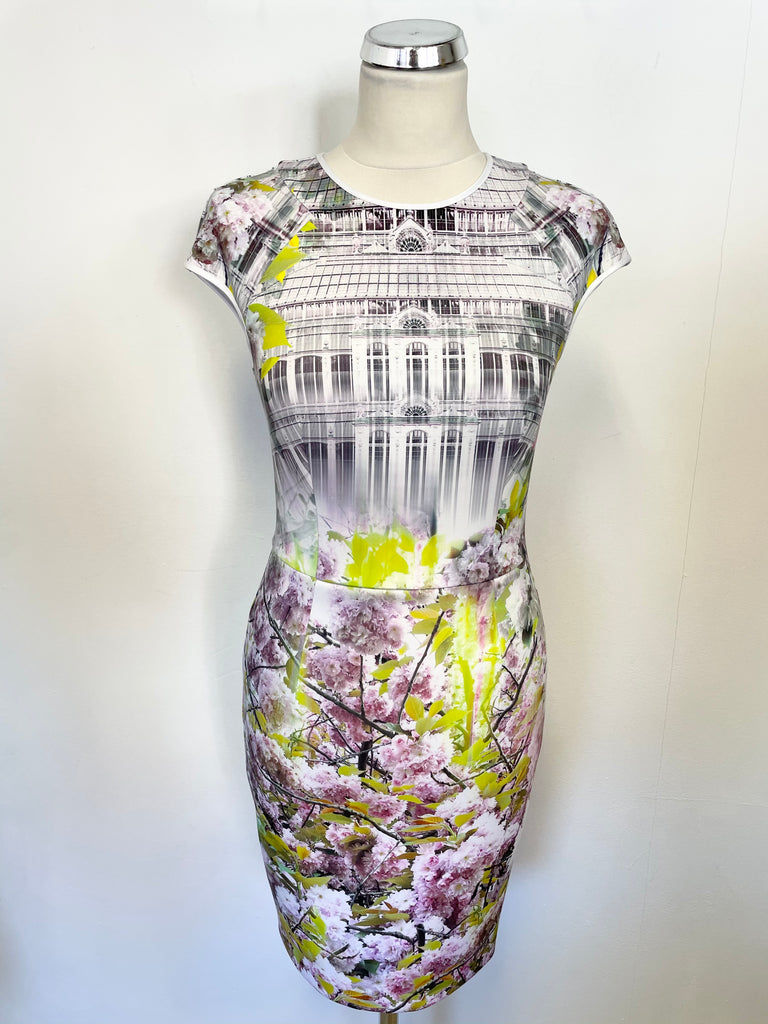 TED BAKER WHITE,PINK & LIME GREEN FLORAL PRINT PENCIL DRESS