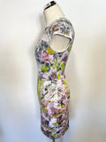 TED BAKER WHITE,PINK & LIME GREEN FLORAL PRINT PENCIL DRESS SIZE 1 UK 8/10