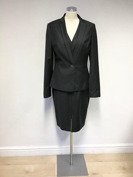 TED BAKER WORKING TITLE DARK GREY WOOL BLEND PENCIL DRESS & JACKET SUIT