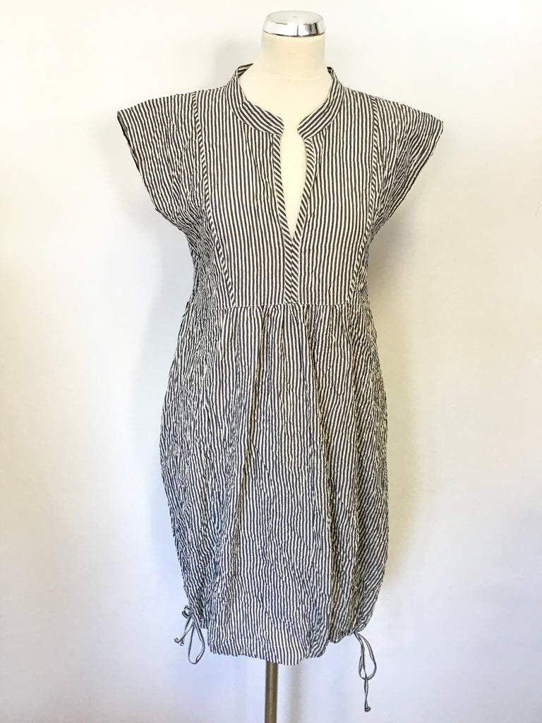 THE MASAI CLOTHING COMPANY BLUE & WHITE STRIPE CRINKLE SLEEVELESS DRESS SIZE S UK 16