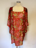 THE REMEDI RED,GREEN & PINK SHADES FLORAL PRINT SILK TUNIC TOP ONE SIZE