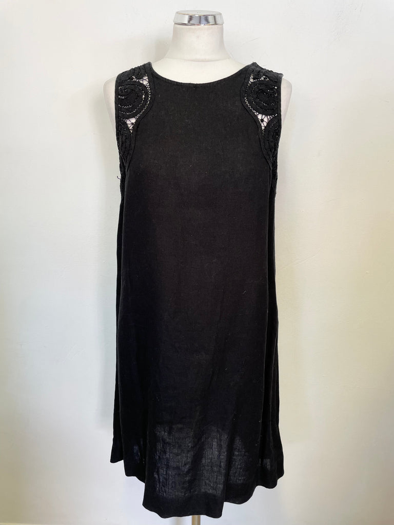 THE WHITE COMPANY BLACK LINEN SLEEVELESS SHIFT DRESS SIZE 10