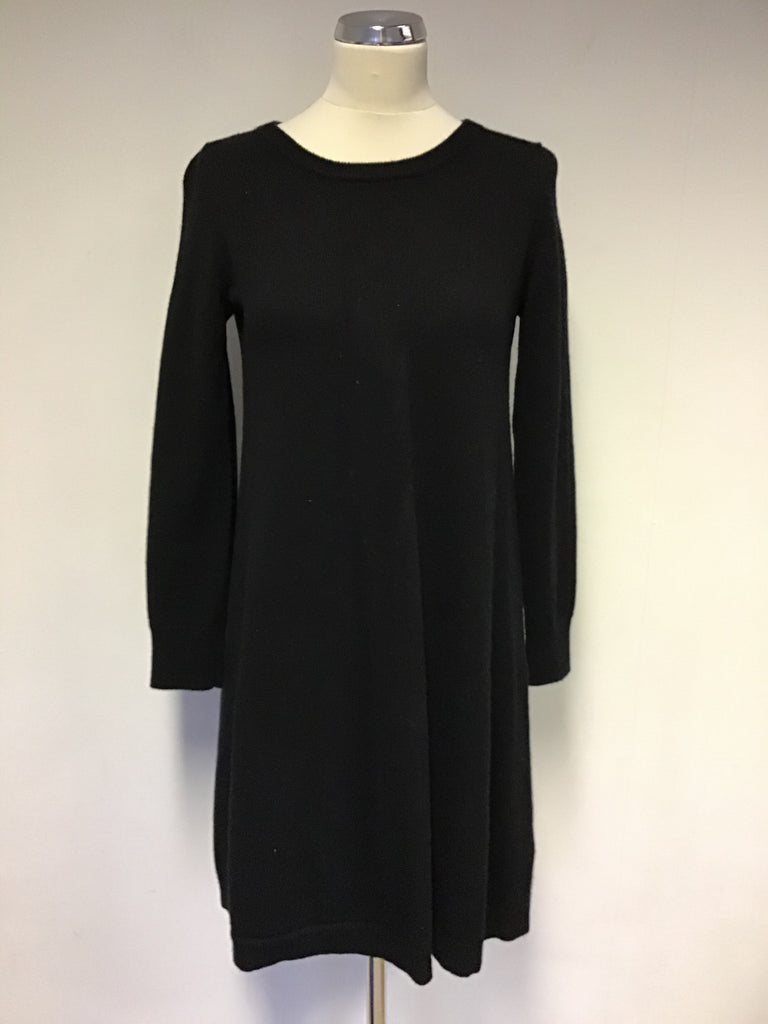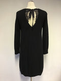 THE WHITE COMPANY BLACK MERINO WOOL KNIT TIE BACK KNIT DRESS SIZE 8