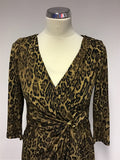TINA B. NEW YORK BROWN LEOPARD PRINT 3/4 SLEEVE WRAP STYLE DRESS SIZE S UK 10/12