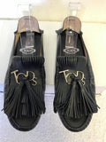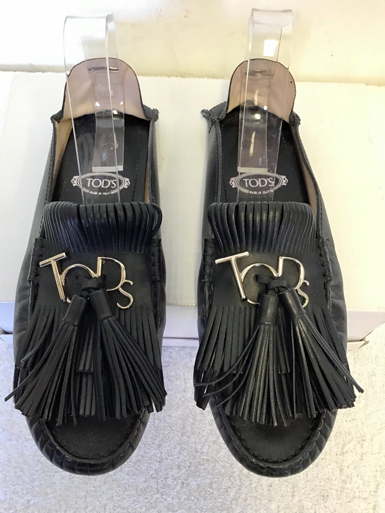 TODS BLACK LEATHER TASSEL TRIM MULES SIZE 5/38