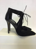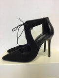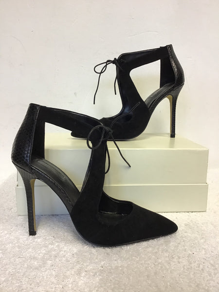 TOPSHOP BLACK SUEDE & LEATHER LACE TIE FRONT CUT OUT HEELS SIZE 3.5 / 36