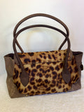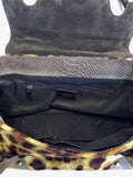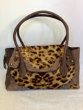 TOSCA BLU BROWN LEATHER & LEOPARD PRINT PONYSKIN SHOULDER BAG
