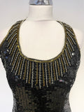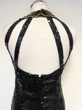 UNBRANDED BLACK SEQUINNED & BEAD TRIMMED SILK LONG EVENING DRESS SIZE 10