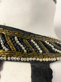 UNBRANDED BLACK SEQUINNED & BEAD TRIMMED SILK LONG EVENING DRESS