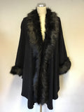 UNBRANDED BLACK WITH FAUX FUR TRIM CAPE/WRAP ONE SIZE
