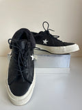 UNISEX CONVERSE ONE STAR BLACK LEATHER & FAUX FUR TRIM TOP PLIMSOLS SIZE UK 7/40