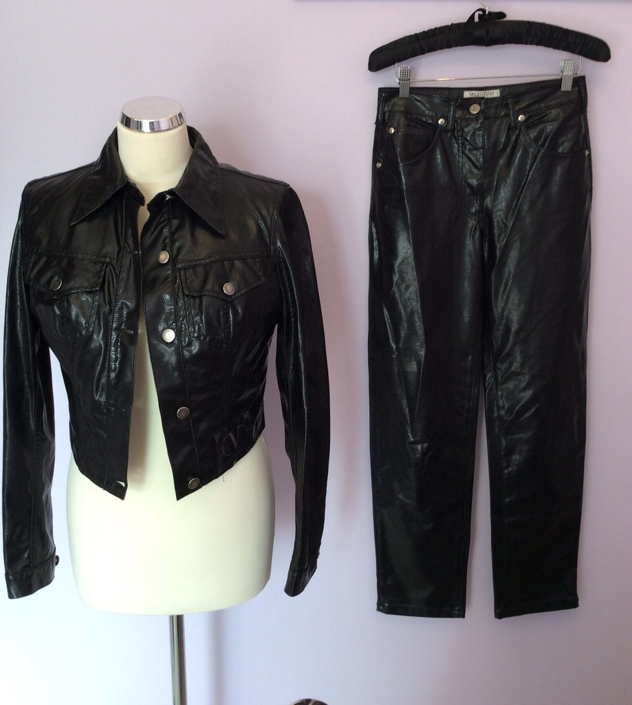 Valentino Jeans Black Pvc Trouser Suit Size 10