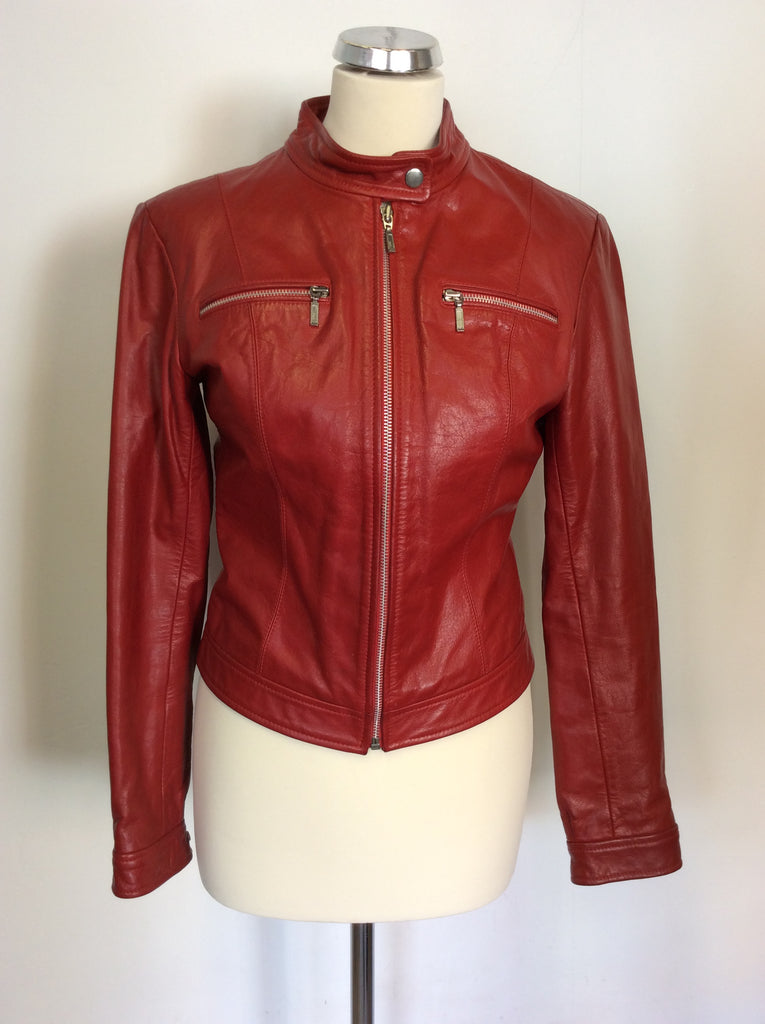VALI RED LEATHER ZIP UP BIKER STYLE JACKET SIZE 12