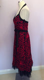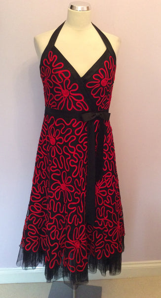 Veni Infantino For Roland Joyce Black & Red Appliqué Halterneck Dress Size 10
