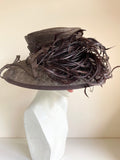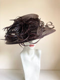 VICTORIA ANN DARK BROWN FEATHER & COIL TRIM FORMAL HAT