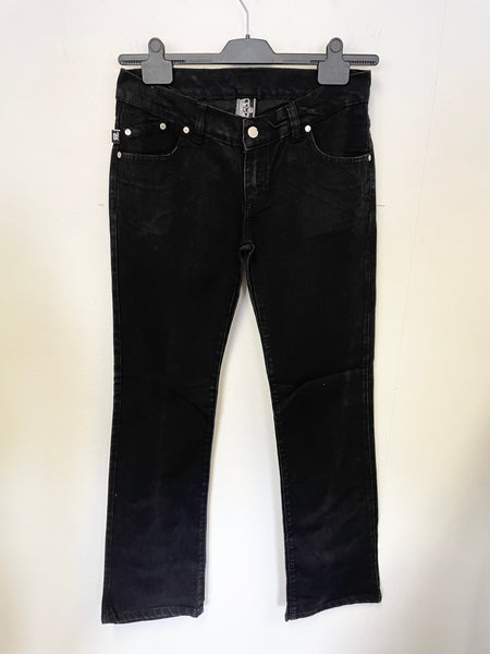VICTORIA BECKHAM BLACK DENIM CROWN JEWEL TRIMMED STRAIGHT LEG JEANS SIZE 32