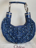 VINTAGE CHLOE BLUE BEADED CRESCENT BEADED BAG FROM 2002 WHEN STELLA MCCARTNEY WAS DESIGNING AT CHLOE