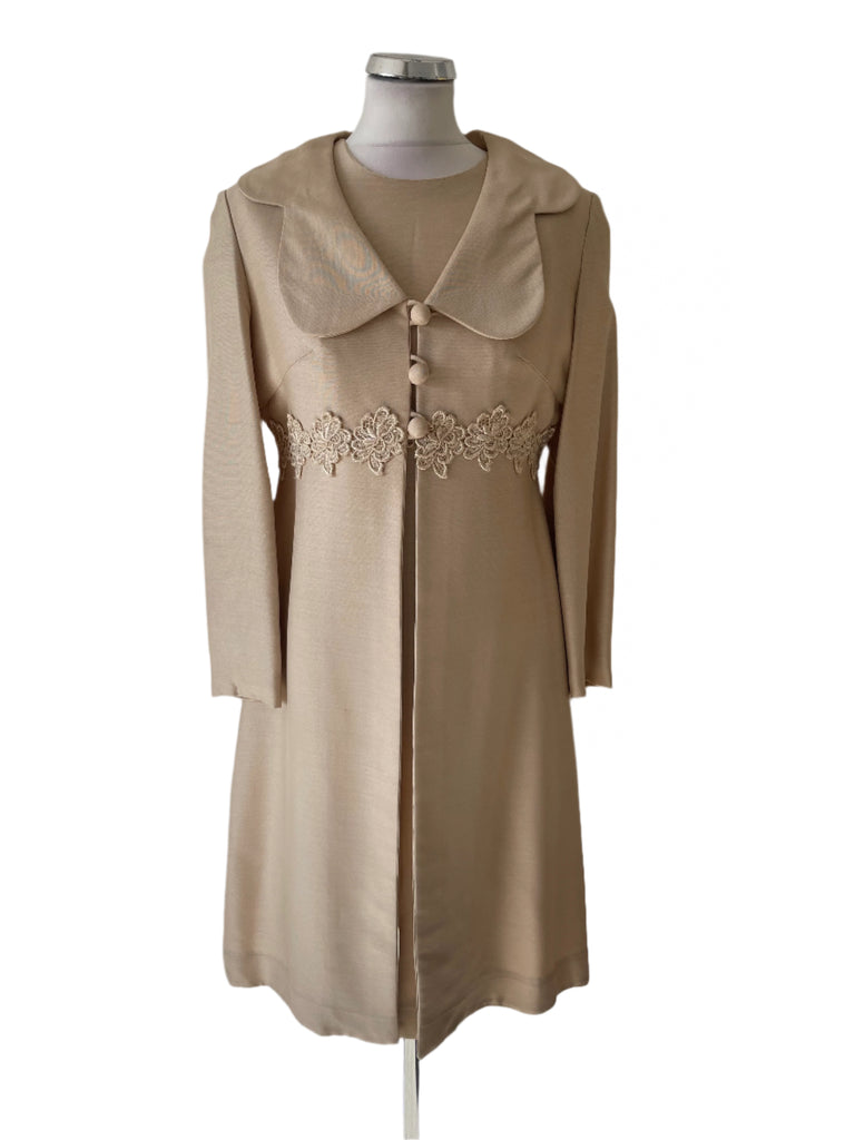 VINTAGE CLEVALINE CREAM  SPECIAL OCCASION DRESS & COAT SUIT