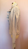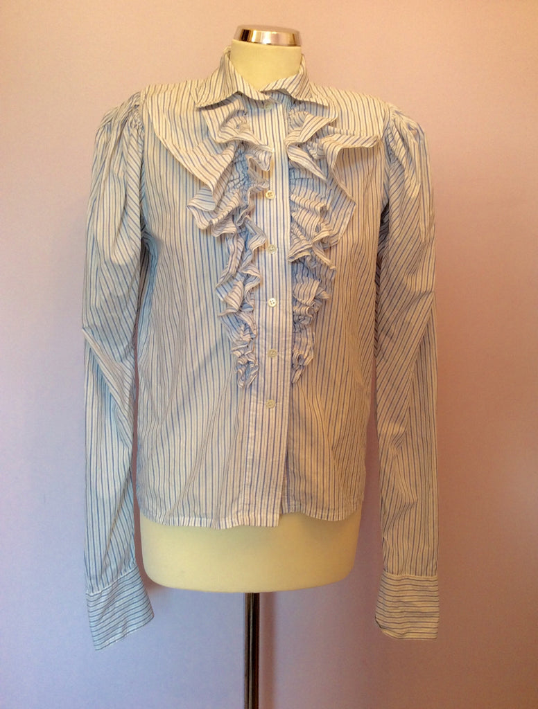 Vintage Droopy & Browns Blue & White Stripe Frill Front Cotton Shirt Size 10